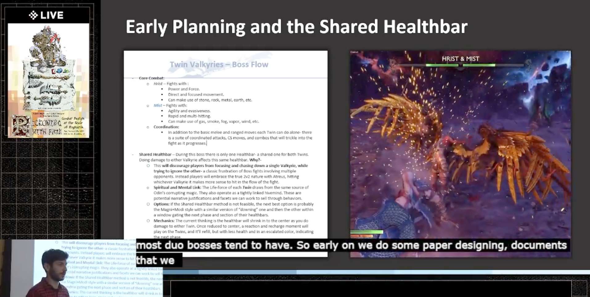 <figure><img src="https://1666186240-files.gitbook.io/~/files/v0/b/gitbook-x-prod.appspot.com/o/spaces%2F-LtVT8pJjInrrHVCovzy%2Fuploads%2FwY9OZ9CSNXZzX1xfq0Qw%2FLDB_PacingEncounterCombat_RobMeyer_GodOfWarRagnarok.jpg?alt=media&#x26;token=45ce4dd9-2189-4f2e-b175-9507e821d7c2" alt=""><figcaption><p>slide of "Early Planning and the Shared Healthbar" from <a href="https://youtu.be/6iTBqcBv5QA?t=3160">"Reckoning With Fate: Combat Design at the Scale of Ragnarok" by Rob Meyer (via YouTube)</a></p></figcaption></figure>